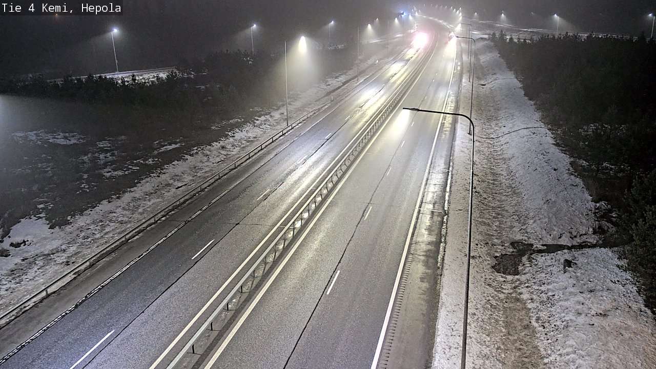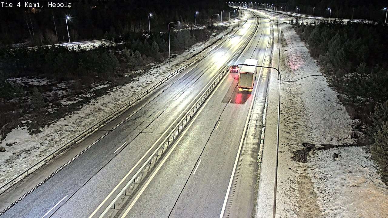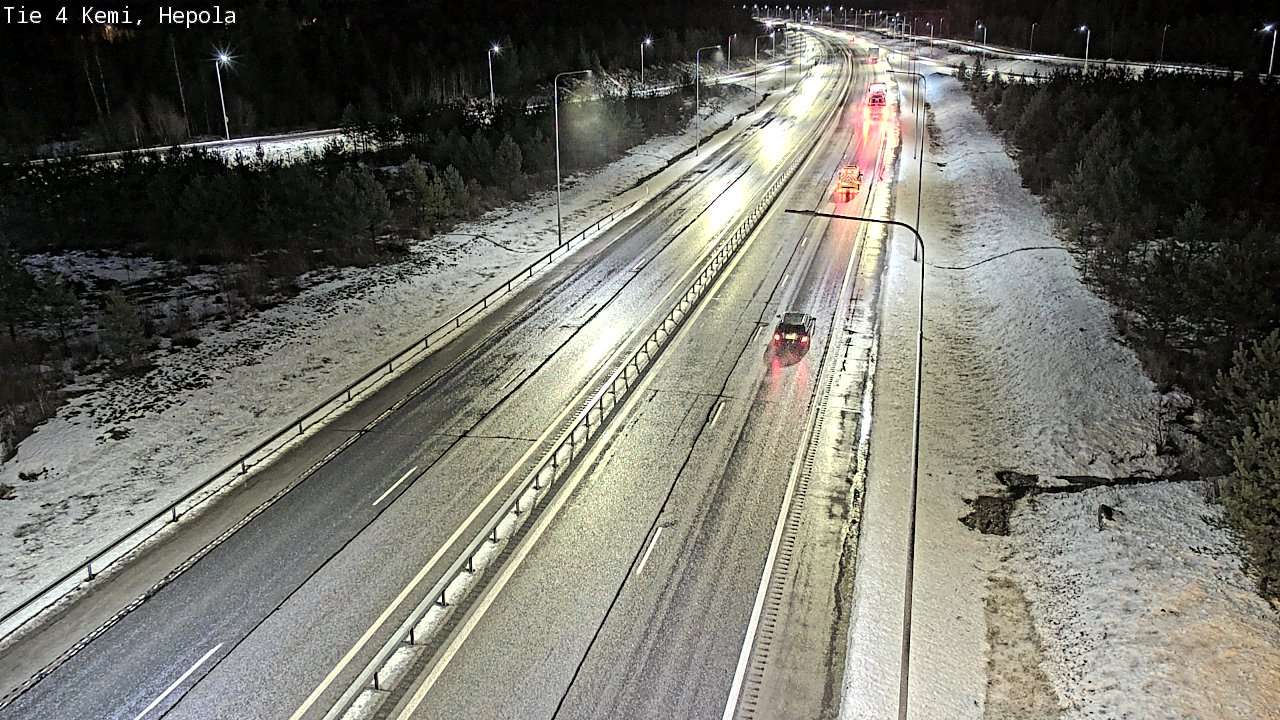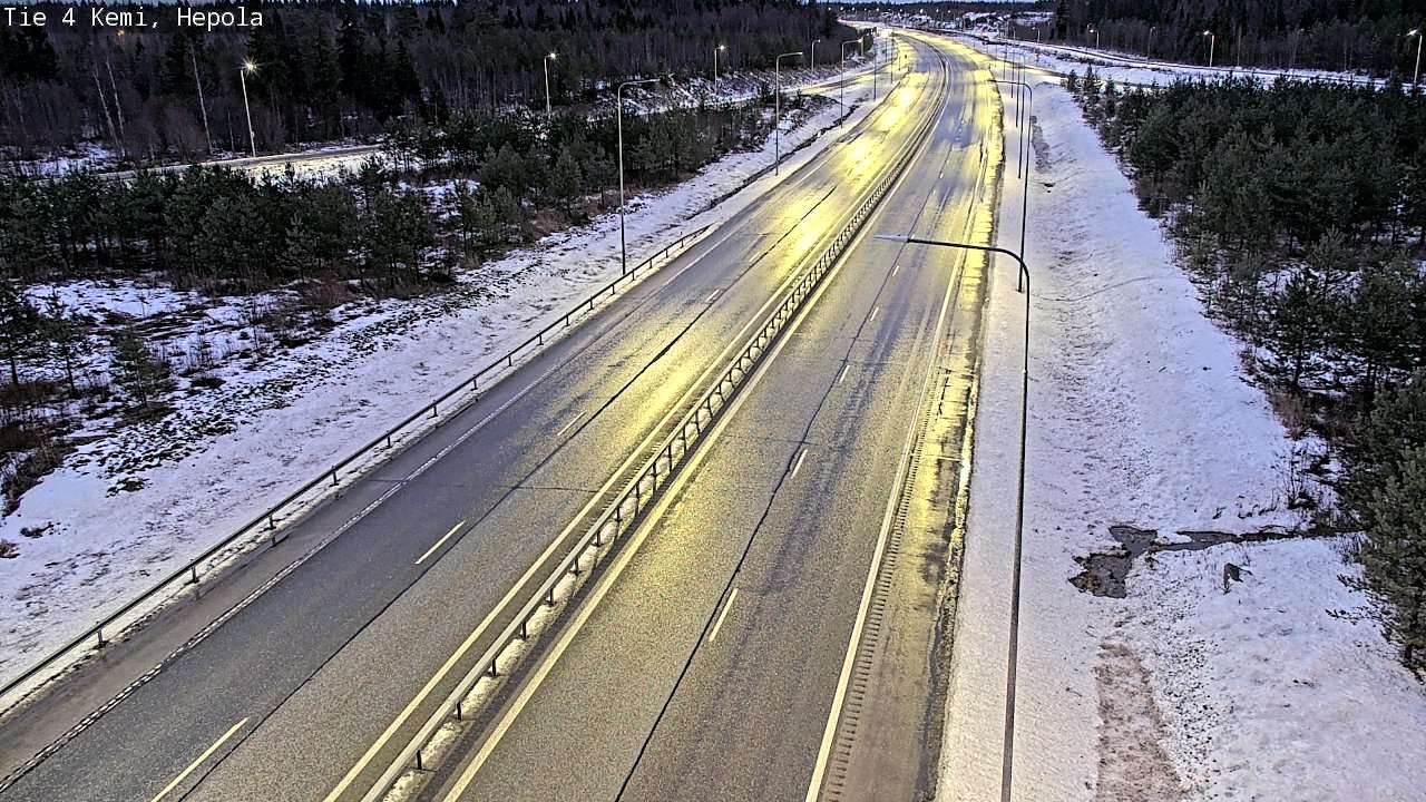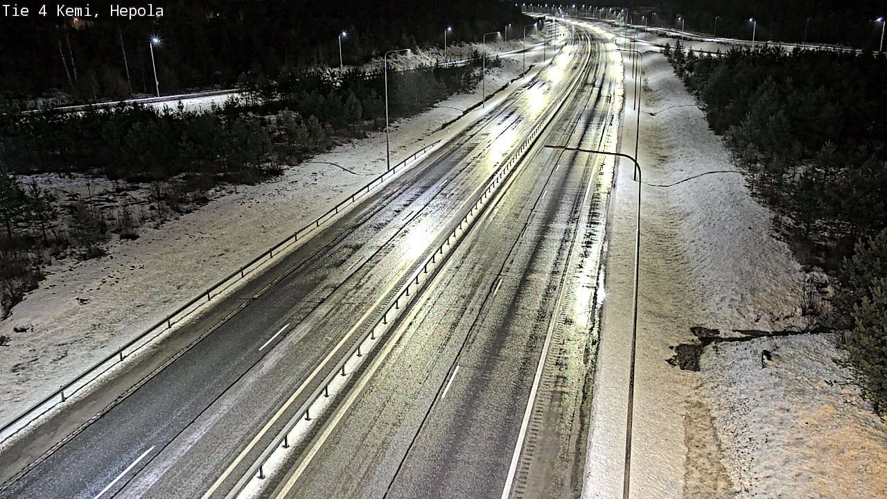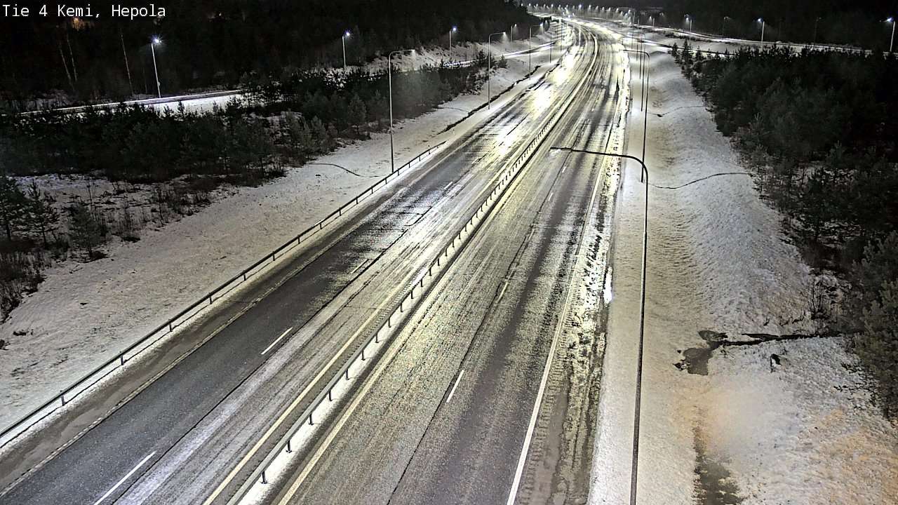 The images from weather cameras in the Lapland region are retrieved from traffic cameras managed by Fintraffic Oy. The images captured by these cameras are updated with a delay of approximately 30-60 minutes. The real-time accuracy of the traffic camera images and weather data displayed on the site depends on several technical systems. Please note that an image or data may not be available at all or could be outdated.