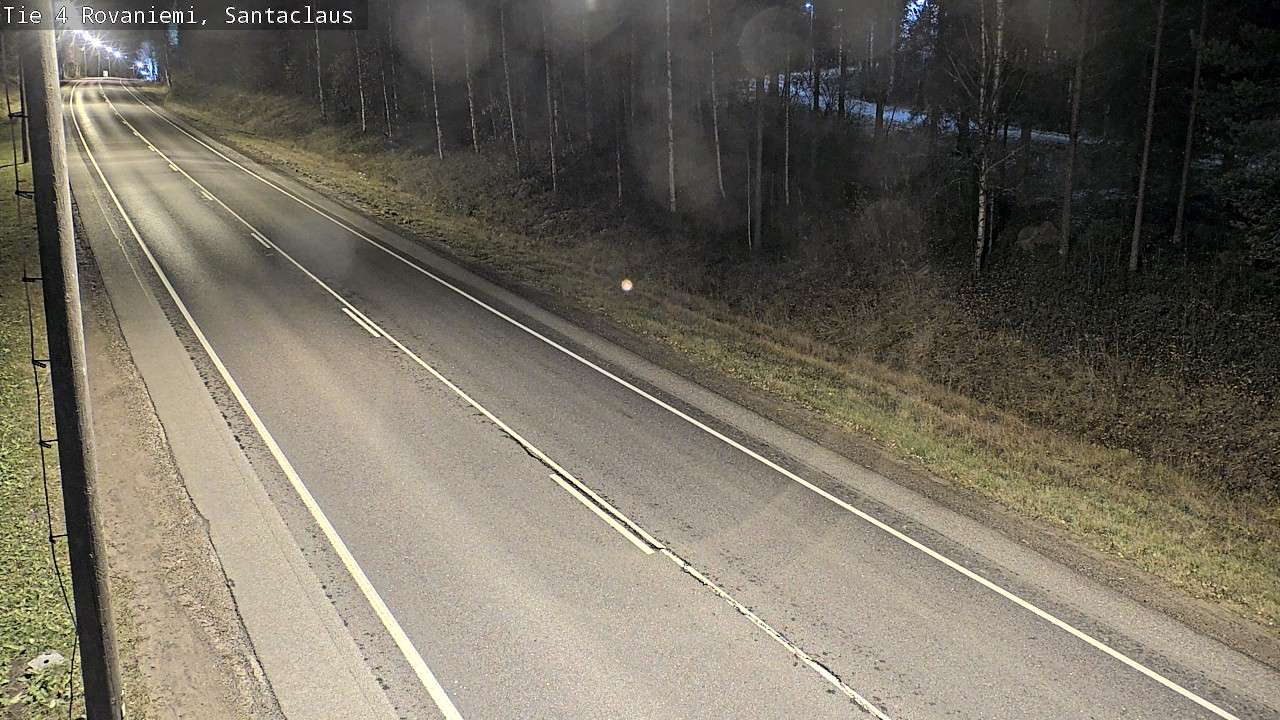 The images from weather cameras in the Lapland region are retrieved from traffic cameras managed by Fintraffic Oy. The images captured by these cameras are updated with a delay of approximately 30-60 minutes. The real-time accuracy of the traffic camera images and weather data displayed on the site depends on several technical systems. Please note that an image or data may not be available at all or could be outdated.